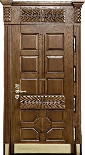 В основе конструкции элитных дверей в Таганроге - стальной лист толщиной не менее 2.0 мм, дверное полотно укреплено ребрами жёсткости (могут быть горизонтальными, вертикальными, комбинированными). При желании можно сделать дверь из стали 3.0 и даже 4.0 мм. Но тут есть ряд особенностей. Полотно и каркас такой двери невозможно сделать из гнутого профиля, конструкция только сварная. Ну и надо помнить, что двери из толстого металла очень тяжёлые, а следовательно, травмоопасные.