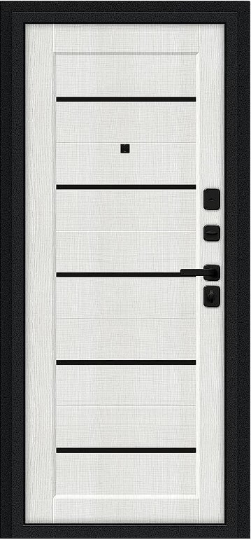 Надежная входная Дверь Браво Борн/SBlack Букле черное/Bianco Melinga премиум класса по цене 33 239 руб. Большая толщина стали защитит от проникновения в ваш дом, квартиру или коттедж. Используется очень качественная фурнитура: замки, цилиндры, ручки, защелки. Покрытие и отделка двери изготовлено под внимательным контролем производителя. Дверь имеет долгий срок службы и гарантию.