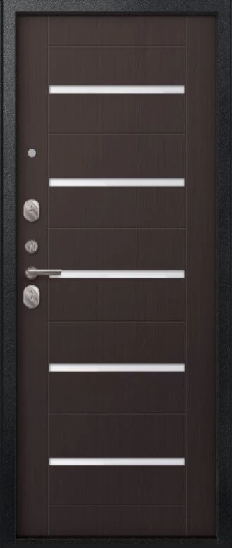 Надежная входная Дверь V-05 Черный муар - Темная лиственница премиум класса по цене 41 489 руб. Большая толщина стали защитит от проникновения в ваш дом, квартиру или коттедж. Используется очень качественная фурнитура: замки, цилиндры, ручки, защелки. Покрытие и отделка двери изготовлено под внимательным контролем производителя. Дверь имеет долгий срок службы и гарантию.
